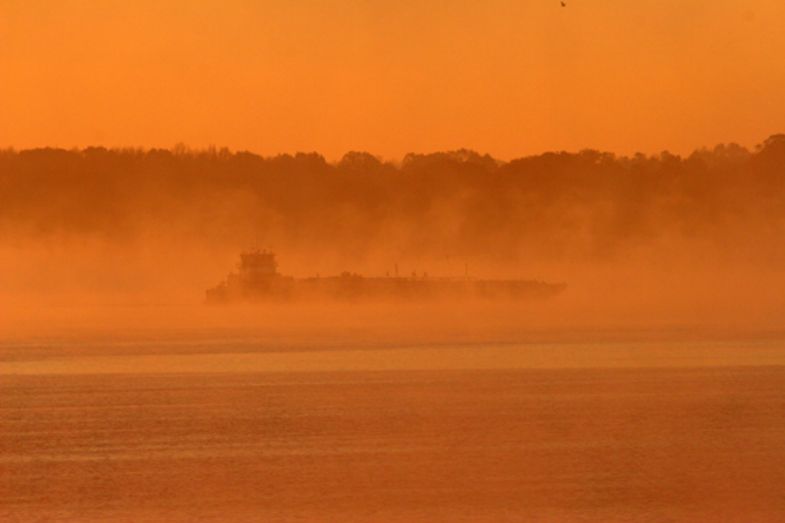 Photo: MIsty Sunrise with Barge